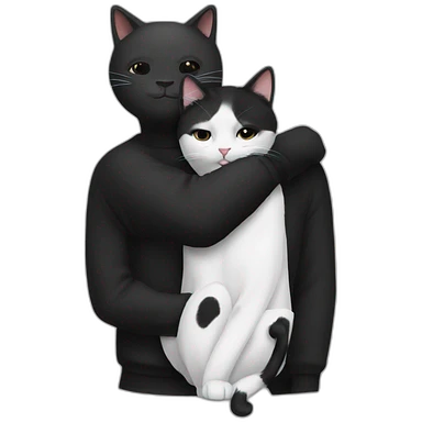 Black and shirt cat hug with a man ans a women emoji | AI Emoji Generator
