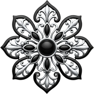 Black and silver filigree broach design, 3D, extremely detailed design emoji