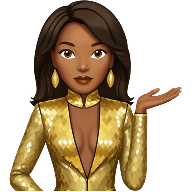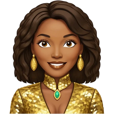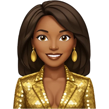 Angela Bassett with long dark brown hair, gold sequin outfit emoji
