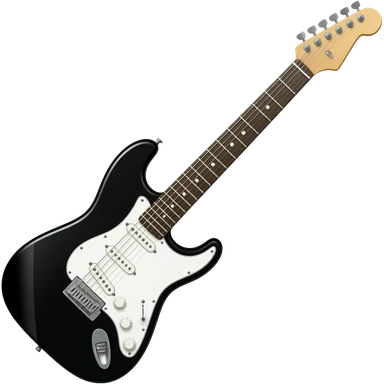 Black and white fender telecaster, NOT A STRATOCASTER tilted 45 degrees to the right and clip art style emoji