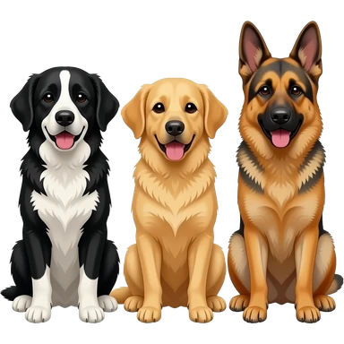 black and white golden retriever next to golden retriever next to German Shepard emoji