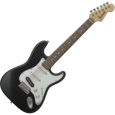 Black and white fender telecaster tilted 45 degrees to the right and clip art style emoji