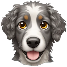 Black and white Aussie and water dog mixed emoji | AI Emoji Generator