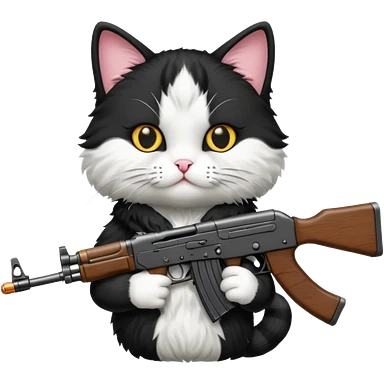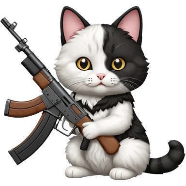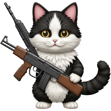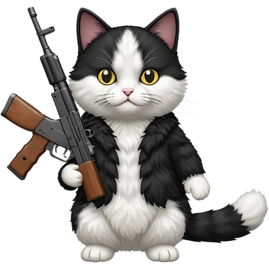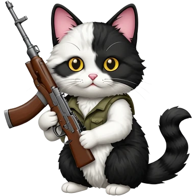 Black and White Cat holding a Chopstick with Kimchi emoji