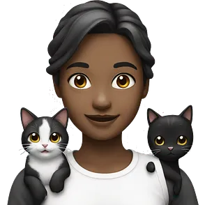 smiling girl with black and white cat emoji