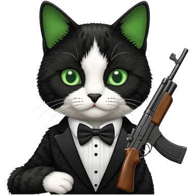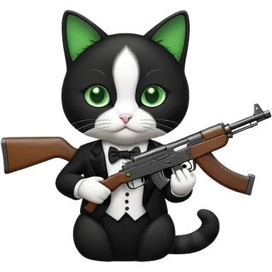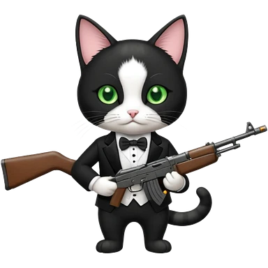 black and white cat with an ak47 gun emoji | AI Emoji Generator