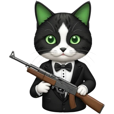 tuxedo cat with an ak47 gun emoji