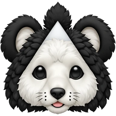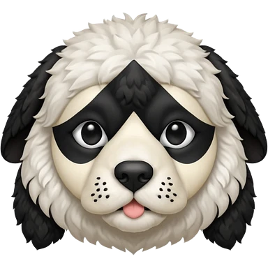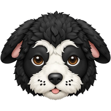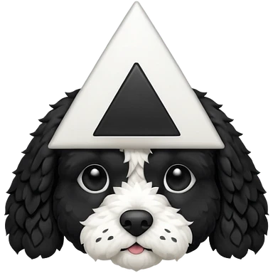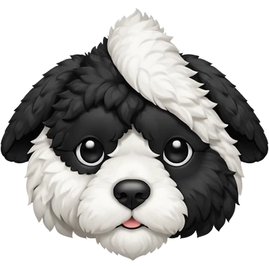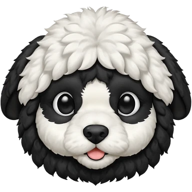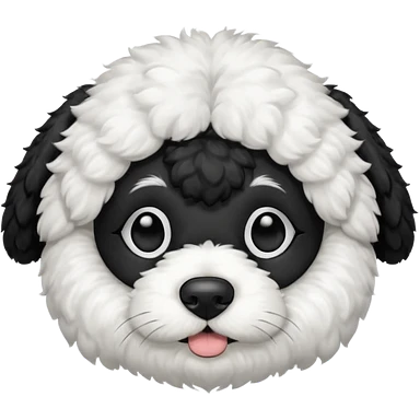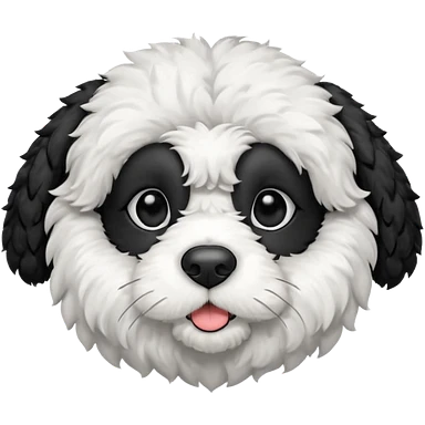 black and white cockapoo - give him a white chest, black ears and black fur covering his eyes, but then a white snout and an upside down white triangle-shaped patch of fur on his forehead emoji | AI Emoji Generator