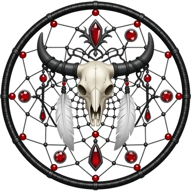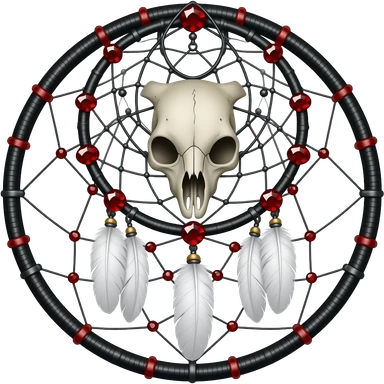 Blood-red, bloody, obsidian-black, edgy, dream catcher, red gemstones, black wire, black threads, white animal skull, white feathers, badass, evil, gorgeous aesthetic, gothic decoration emoji