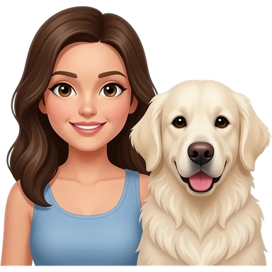 Girl with brown hair and green brown eyes next to a black golden retriever emoji