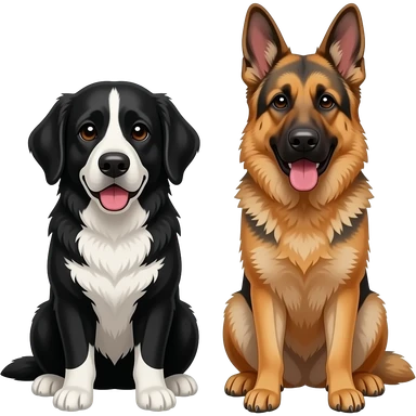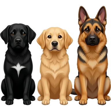 black and white golden retriever next to golden retriever next to German Shepard emoji | AI Emoji Generator