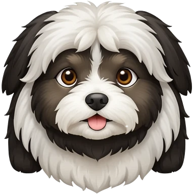caramel skinned middle aged woman with brown hair, with black and white havanese dog emoji