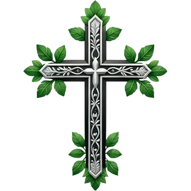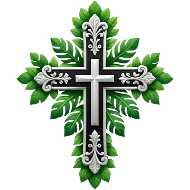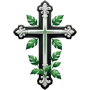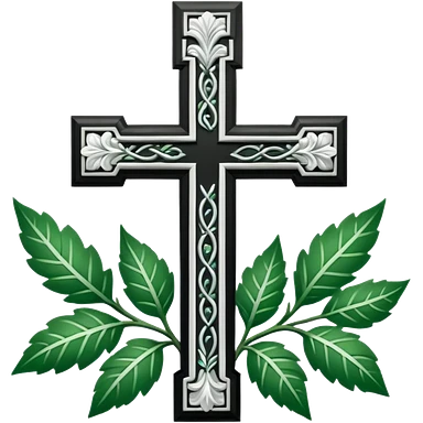 a black and white detailed cross with leaves over the top emoji