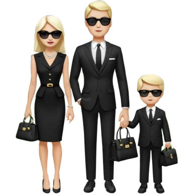Create a scene of a rich family with Ravza Tulip in a black and white dress with a ribbon at the back holding a Birkin handbag, Justin James in a sharp business suit with sunglasses, standing with their happy children in front of their mansion, showing elegance, wealth, and sophistication. emoji