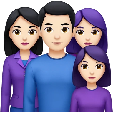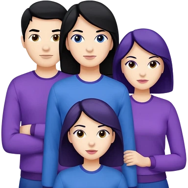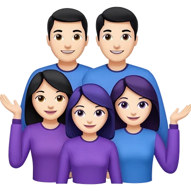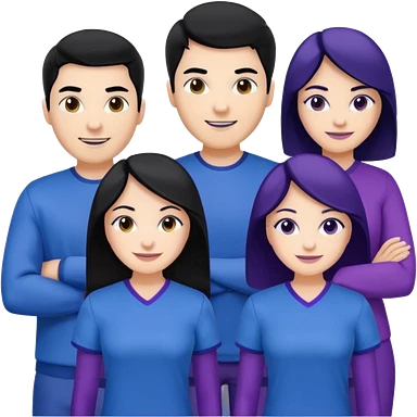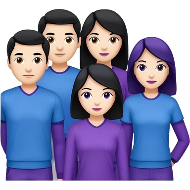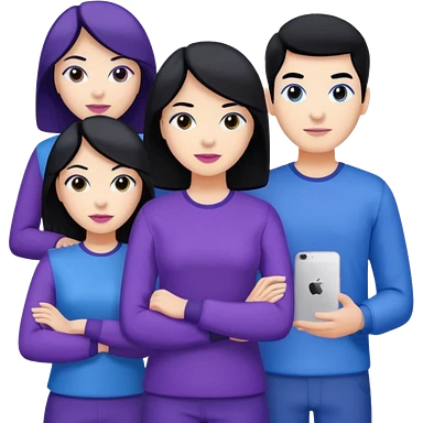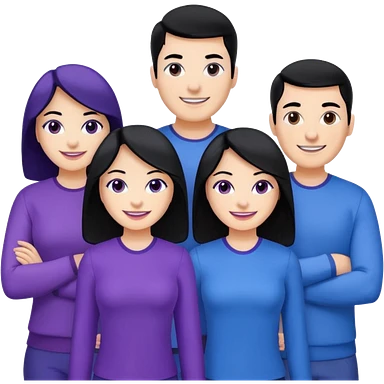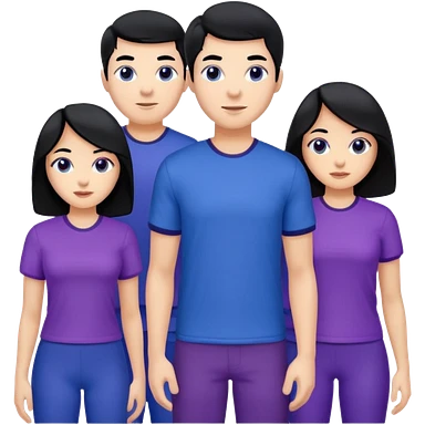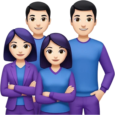 4people 2 men and 2 women. with black hair and white skin. ready to create a team. with blue and purple clothes emoji