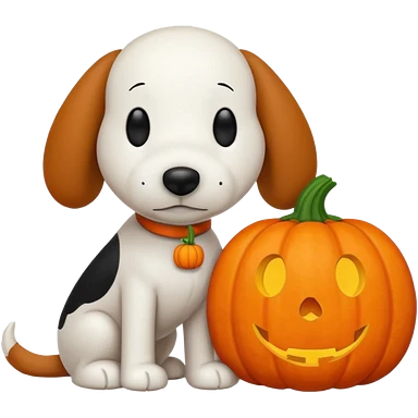 Black and white Snoopy dog with pumpkin emoji | AI Emoji Generator