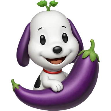 Black and white Snoopy with an eggplant emoji | AI Emoji Generator