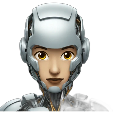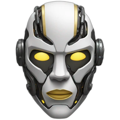 Black and yellow cyborg head with football helmet and circuits emoji | AI Emoji Generator