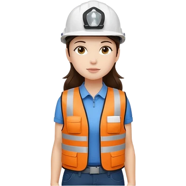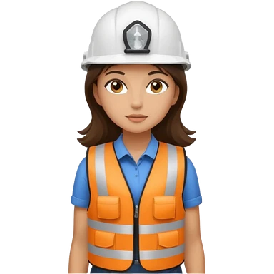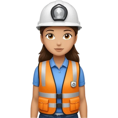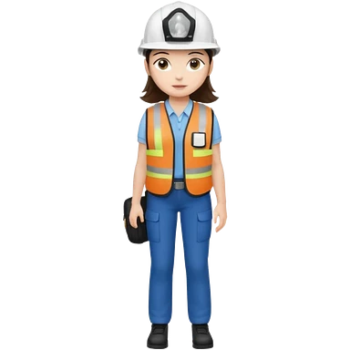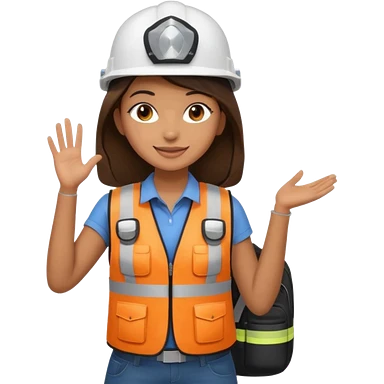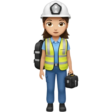 Brunette brown Girl full body standing with her white security helmet and security vest on, also with her black backpack emoji