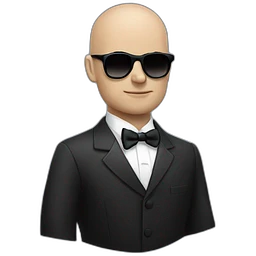 Black bald man with sunglasses in tuxedo emoji | AI Emoji Generator