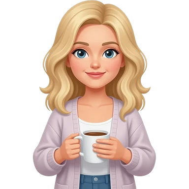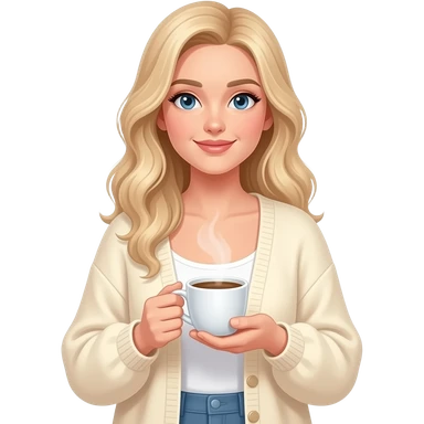 WHITE BLOND WOMAN WITH SHOULDER LENTH HAIR IN FLOWY CARDIGAN HOLDING A CUP OF COFEE emoji