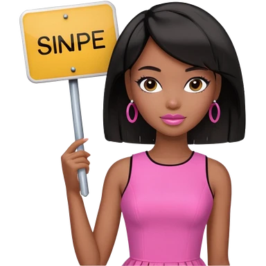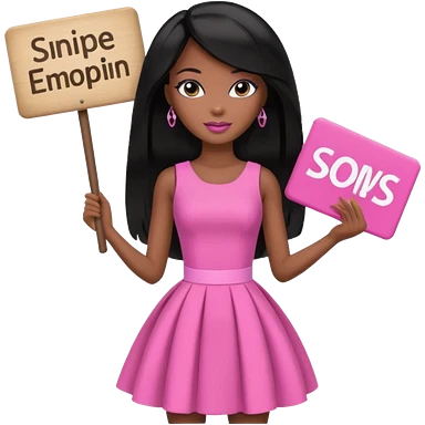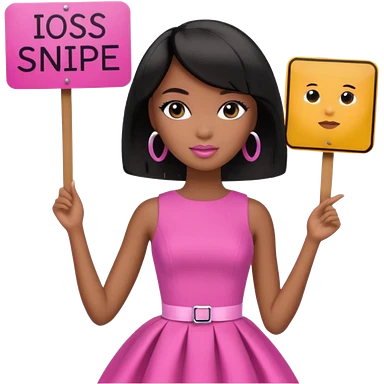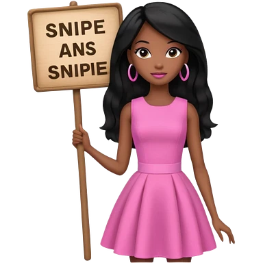 Black barbie, long black hair, pink dress holding sign, that says snipe emoji