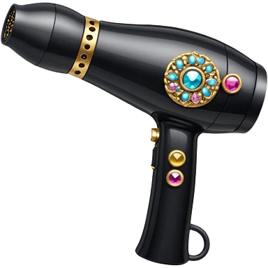 black blow dryer covered in jewelry emoji