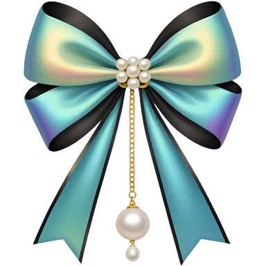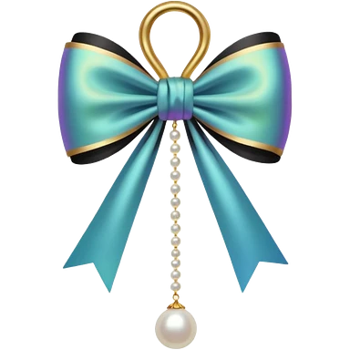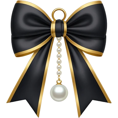 Black bow with golden outer line and hanging pearl emoji