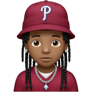 Black boy with dreads and a burgundy Phillies hat emoji