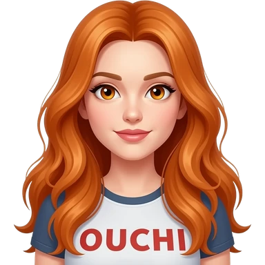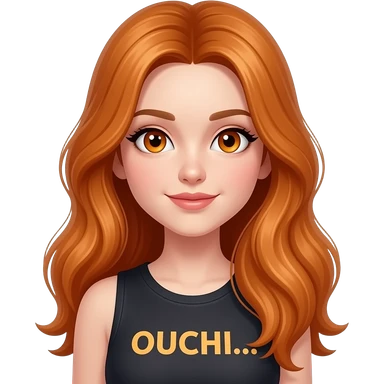 sexy girl with overlong ginger hair and ginger eyes a top with OUCHI... written on it emoji