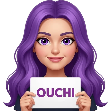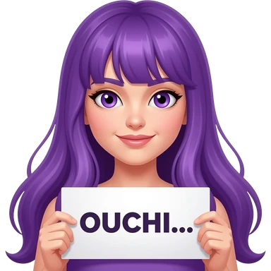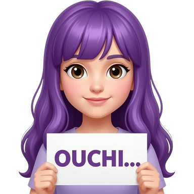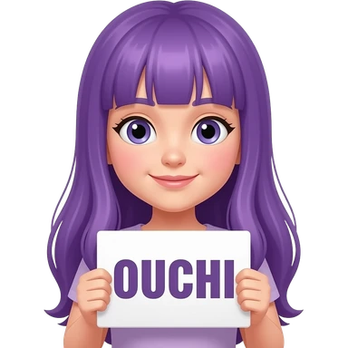 girl with long purple hair holding a OUCHI sign emoji