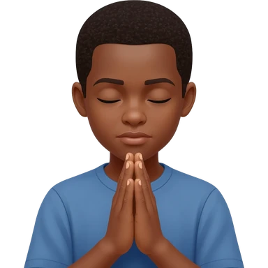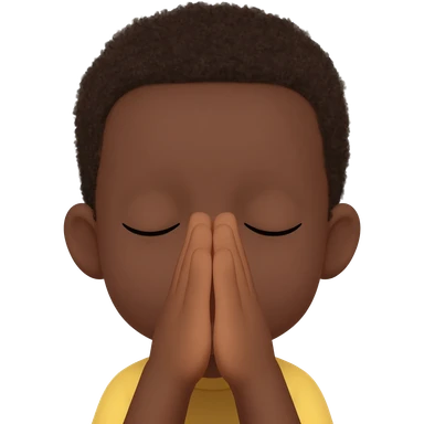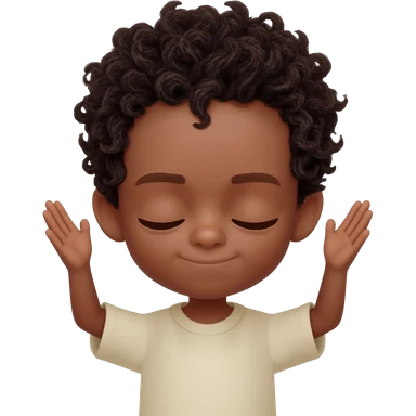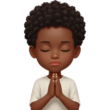 black boy curly hair orange shirt praying hands eyes closed emoji | AI Emoji Generator