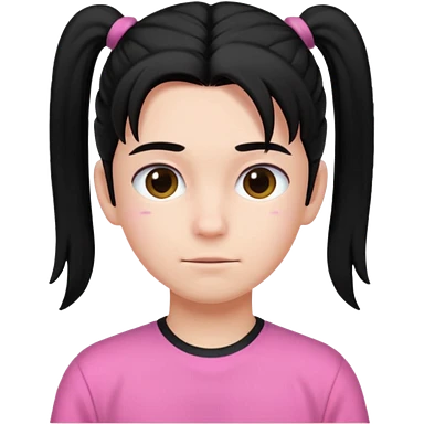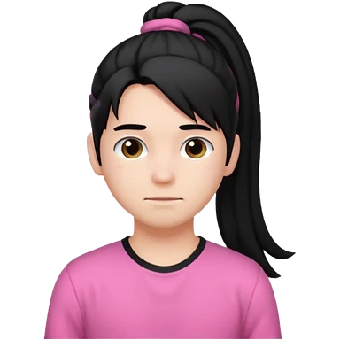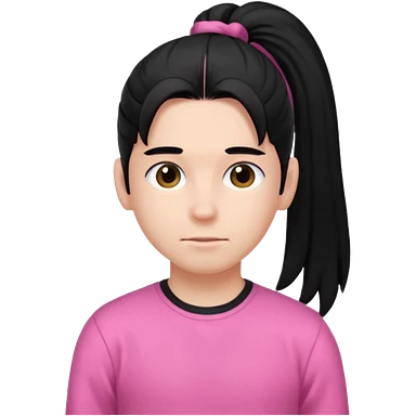 An emoji of a soft boy with black long hair in a poney tale in pink clothes emoji