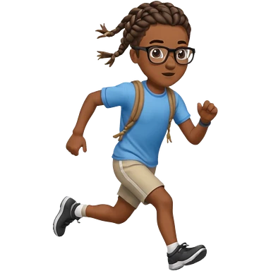 black boy with glasses and braided hair running emoji