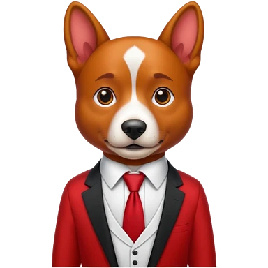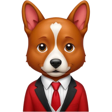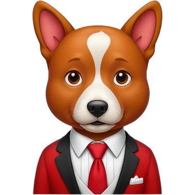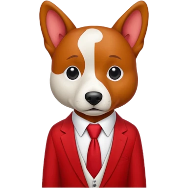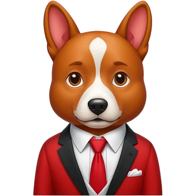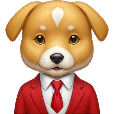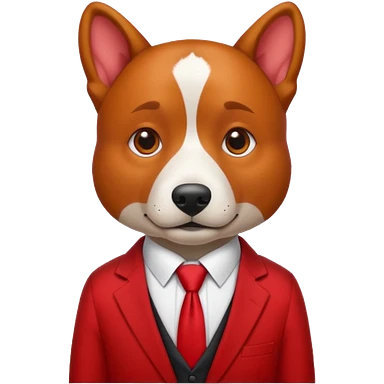 red dog with white tie,red shirt emoji