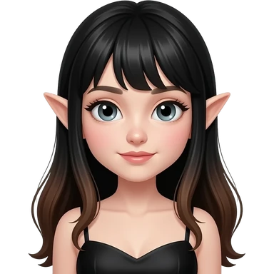black+brown long hair, siren eyes, point nose, black dress cute emoji | AI Emoji Generator