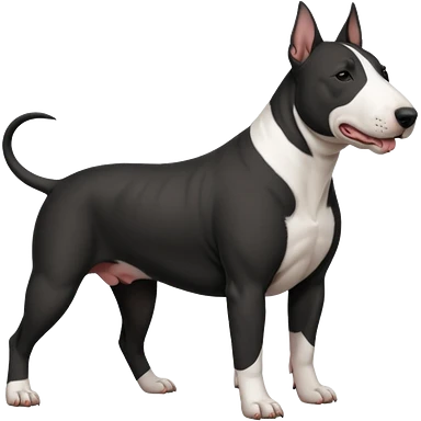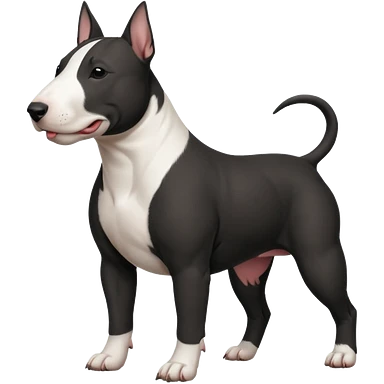 Small black Staffordshire bull terrier with a white j on his chest emoji