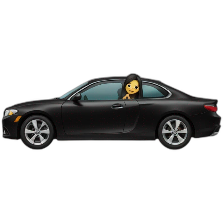 white girl with black hair with a white guy with black hair in bmw white car emoji