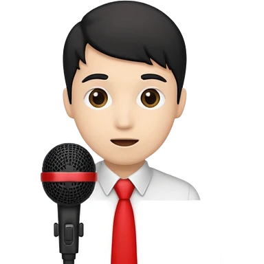 A boy with black hair holding a microphone emoji