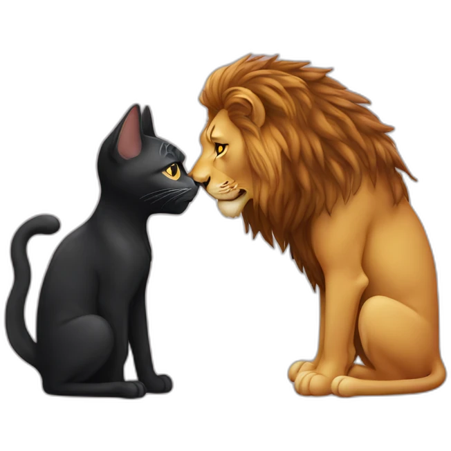 Big Lion and small black cat kiss emoji