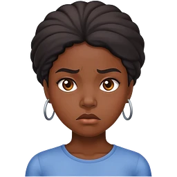 Emoji girl with brown skin and shoulder length black hair looking annoyed emoji