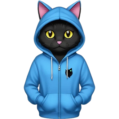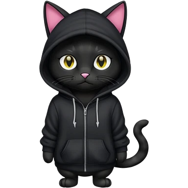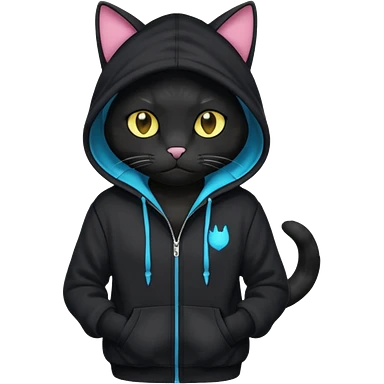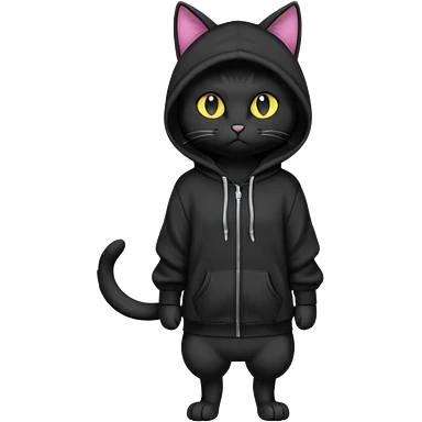 Black cat wearing a hoodie fursona (full body) emoji