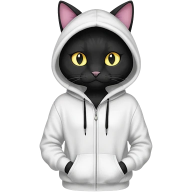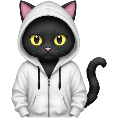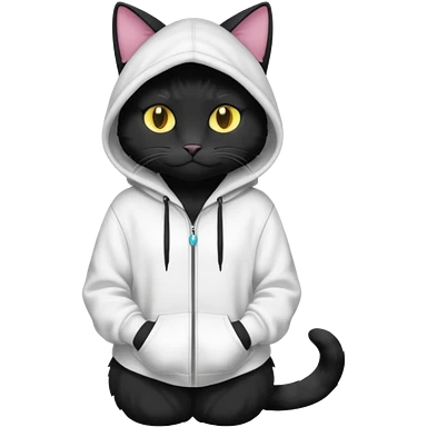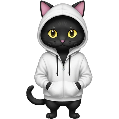 Black cat wearing a white hoodie fursona (full body) emoji