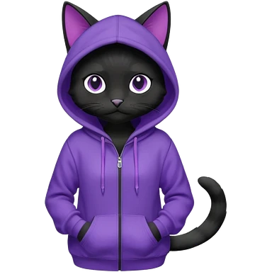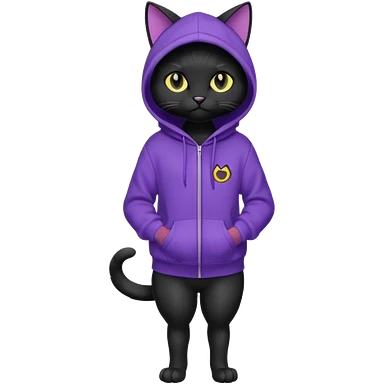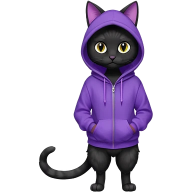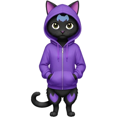 Black cat wearing a violet hoodie fursona (full body) emoji