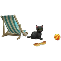 Black cat skating by a beach emoji | AI Emoji Generator