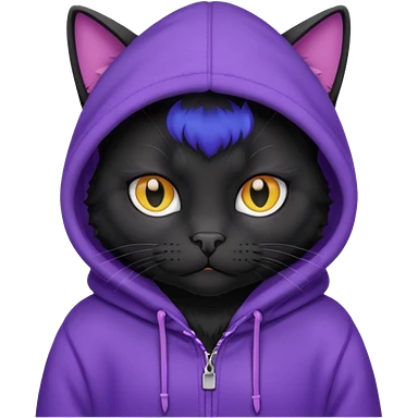 Black cat wearing a purple hoodie emoji