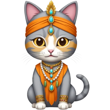 grey cat wearing indian clothes emoji