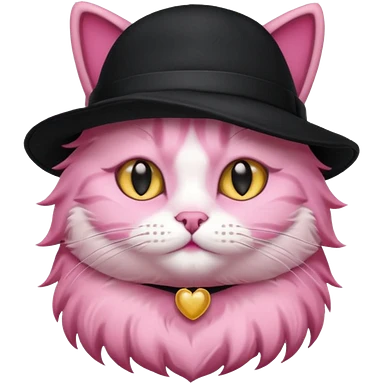 Pink cat wearing black hat emoji
