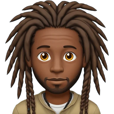 black teen with black dreads in a middle part with brown eyes and a small mustache and purple shirt emoji