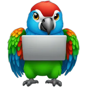 male wizzard with dark hair, slick back hairstyle, green eyes, dark robe green aura coding on laptop emoji